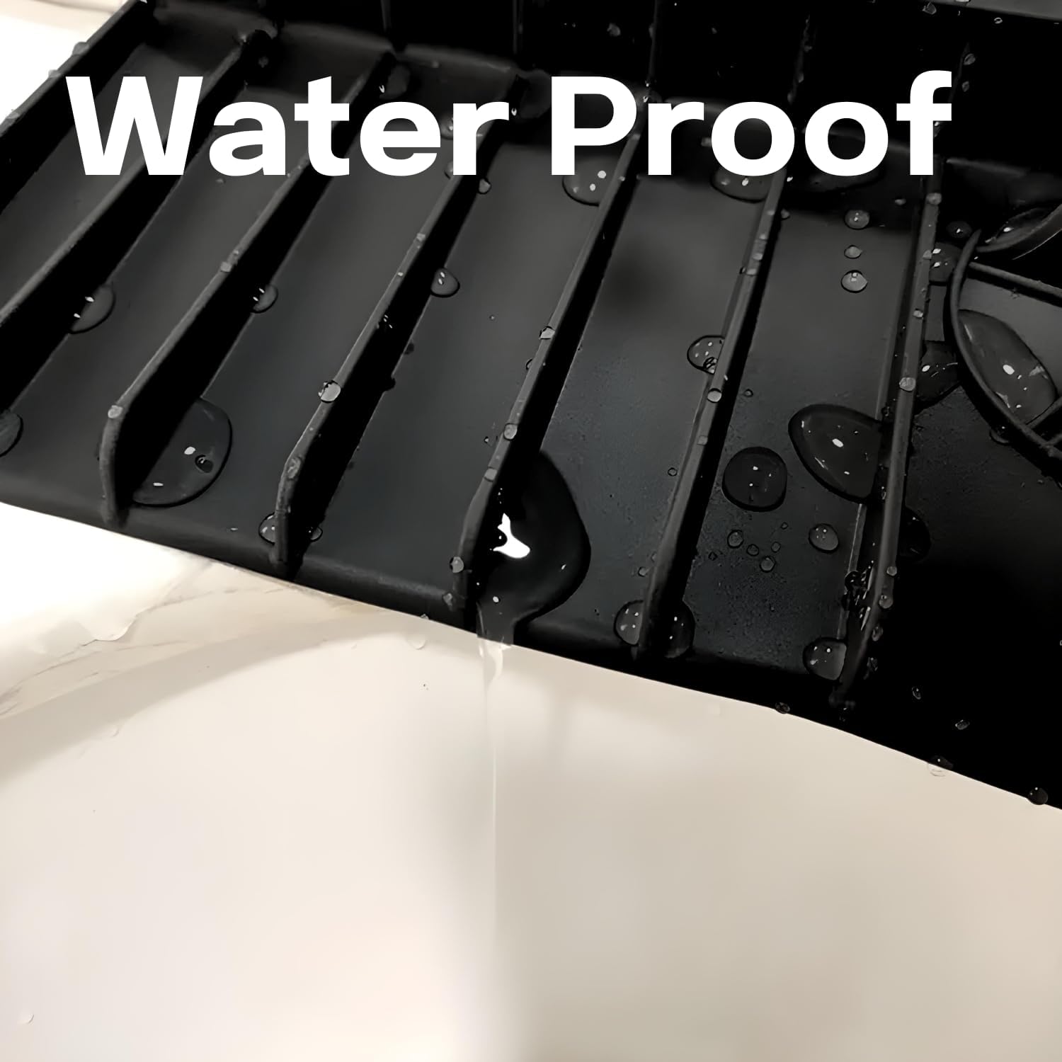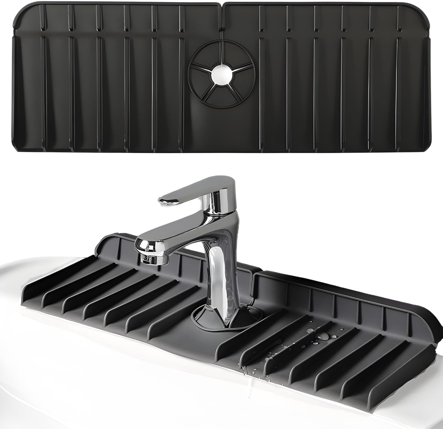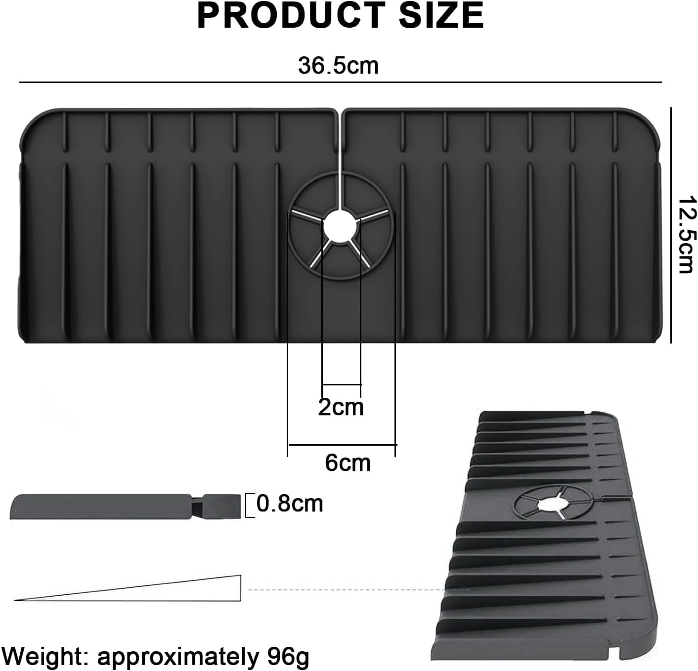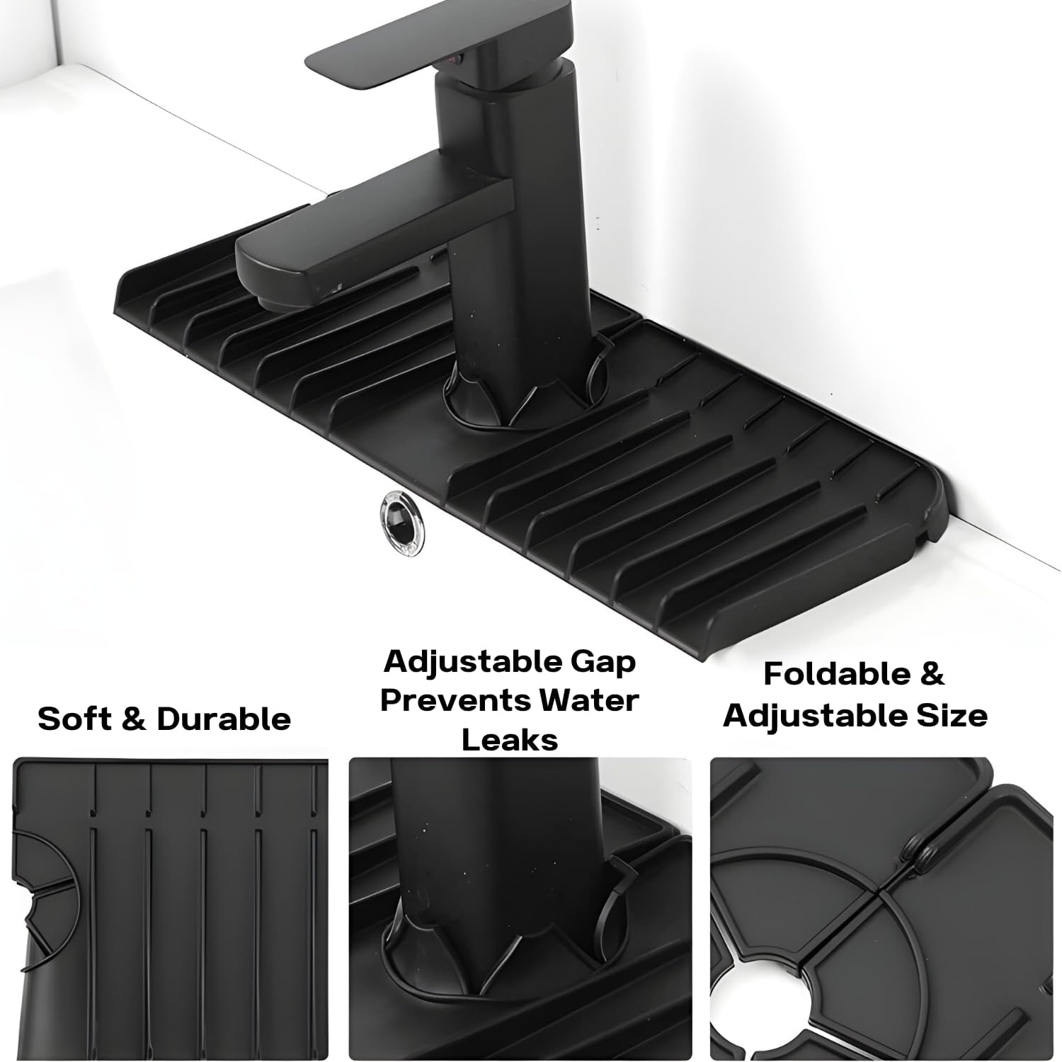 β’Introducing our upgraded version of the Silicone Faucet Sink Mat! Tired of constantly wiping your sink countertop? Say goodbye to that problem with our Sink Faucet Splash Guard. Unlike other fabric types on the market, our silicone water catcher sink mat is designed with draining capabilities, ensuring that water never stays on the mat or counter. Simply rinse it with water for effortless cleaning.